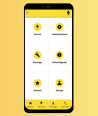 In der Elektro App Vorlage sind die verschiedenen Arbeitsbereiche eines Elektroinstallateurs aufgelistet. Mit einem Klick auf den Servicebereich kann der Kunde schnell und einfach eine Anfrage stellen.