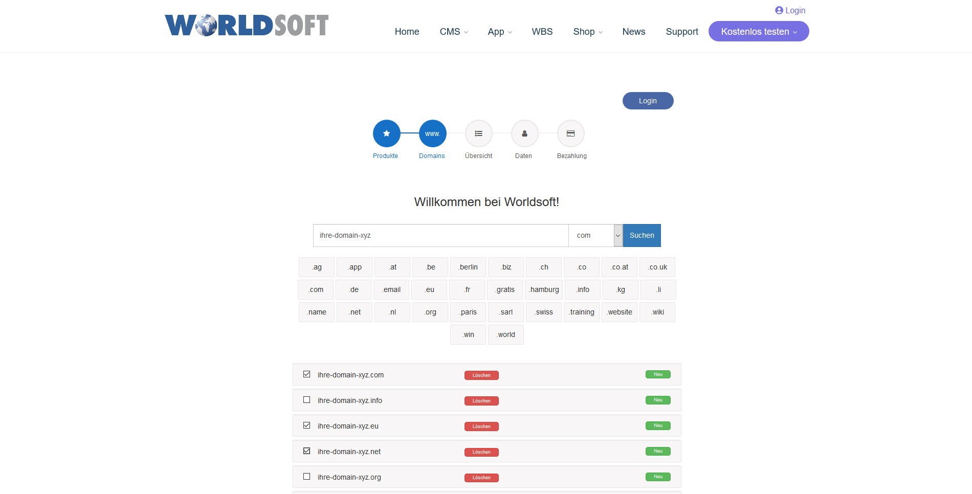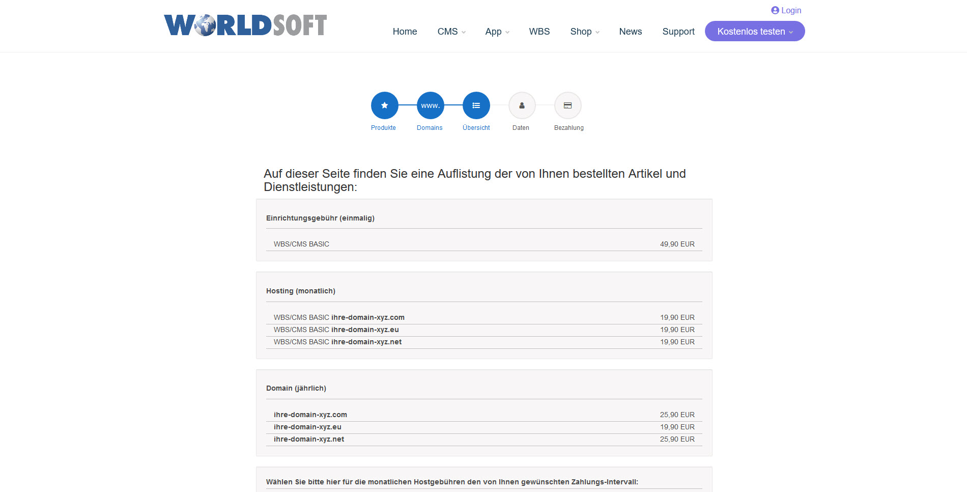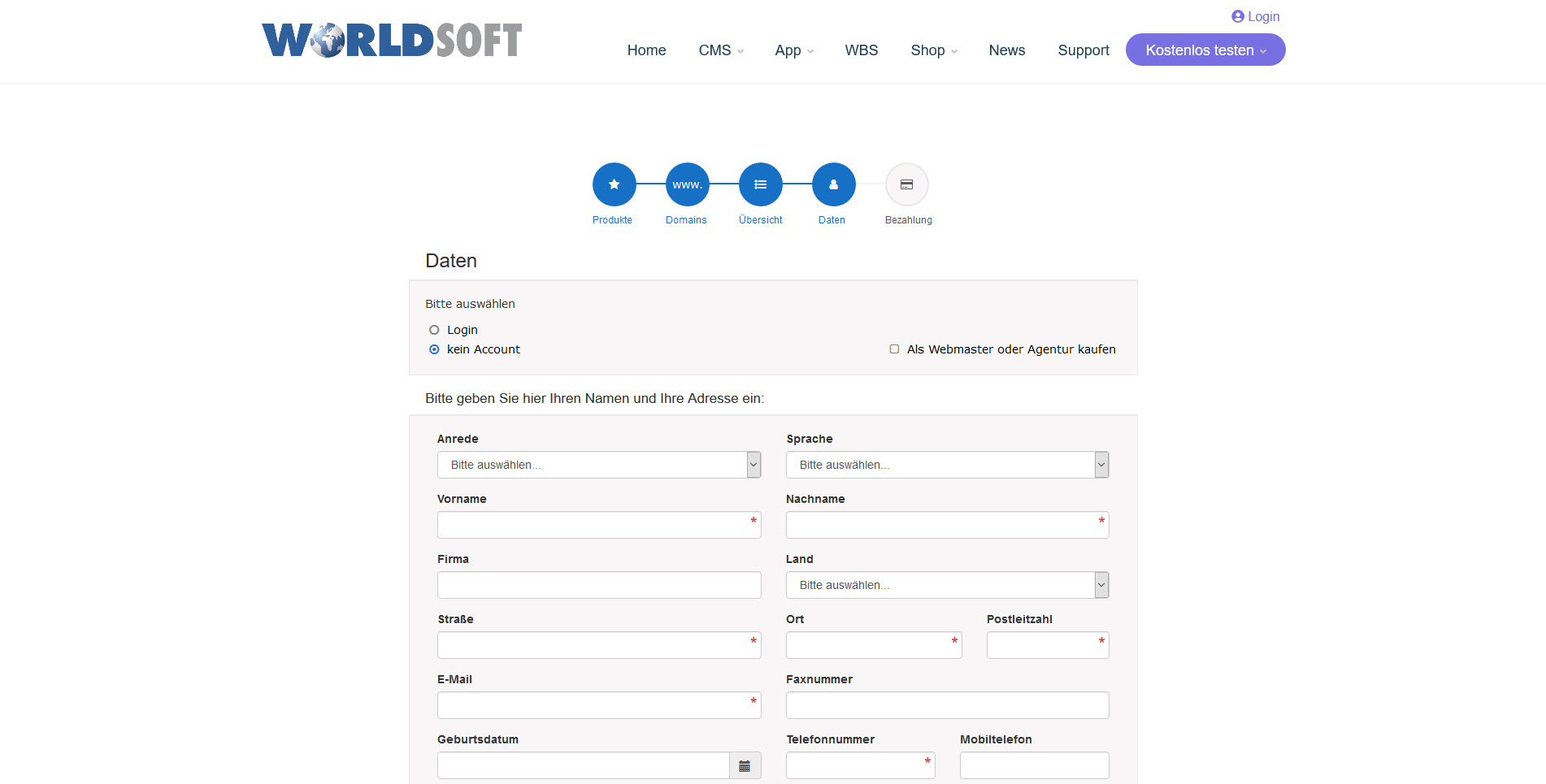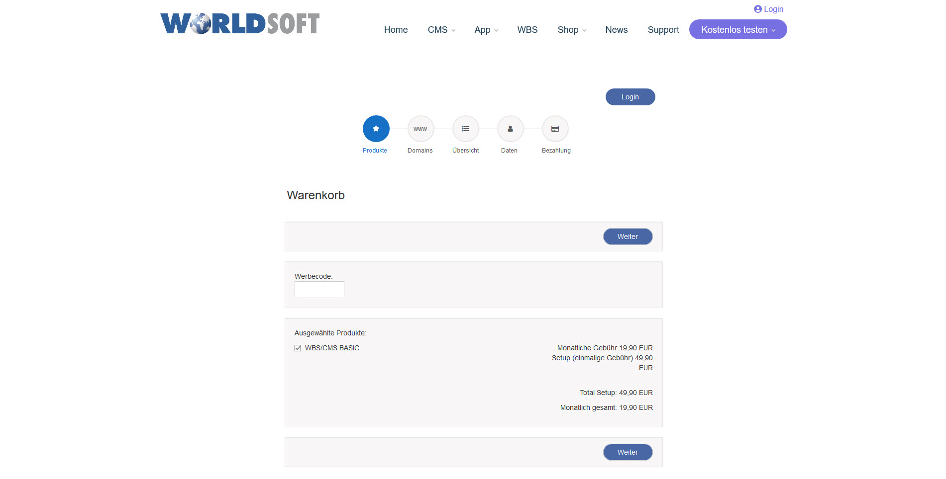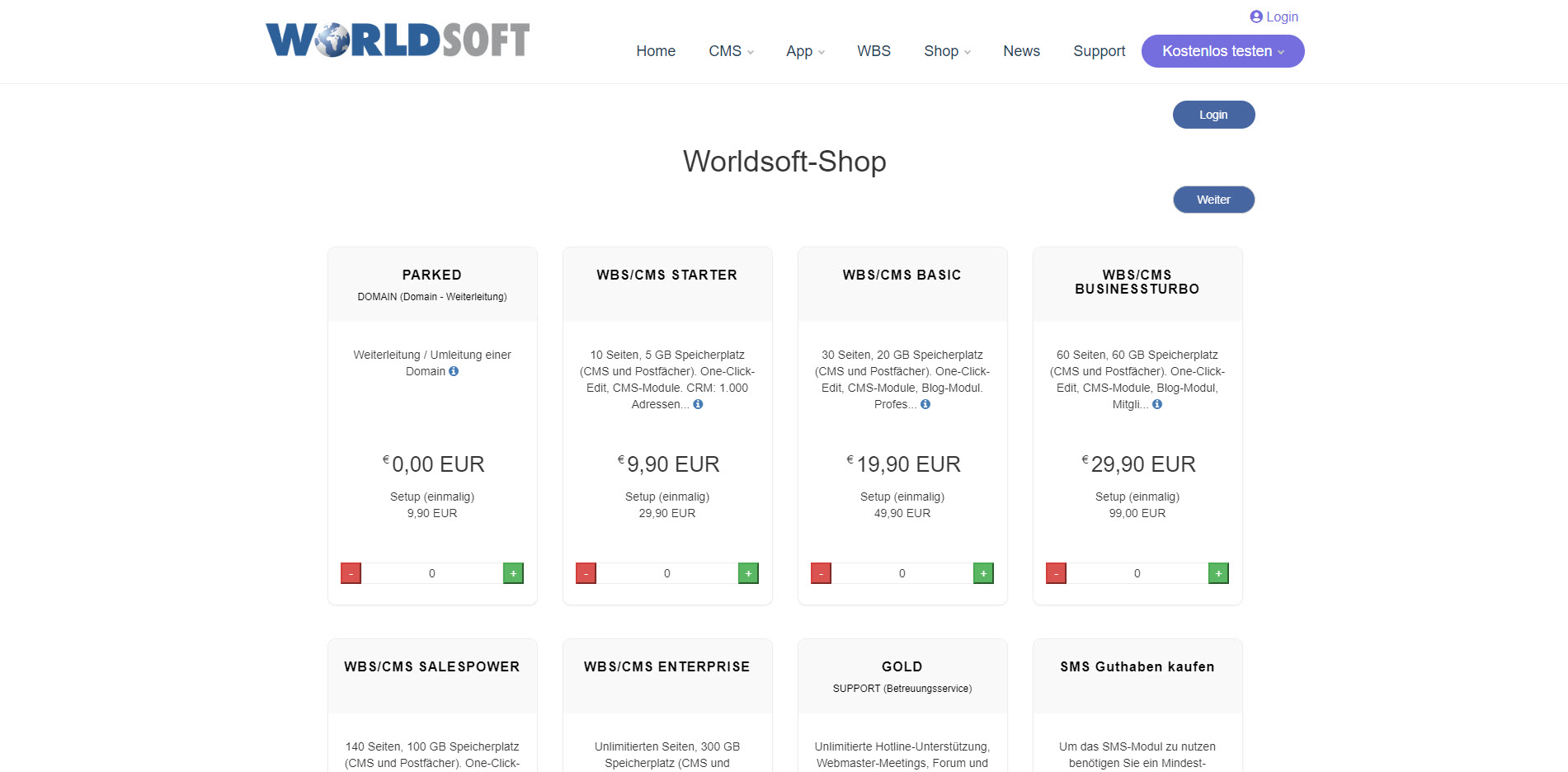 Auf den Worldsoft Websites (www.worldsoft.info/227 und www.worldsoft-wbs.info/117) finden Sie den neuen Einkaufs-Shop für unsere Dienstleistungen. Alle Zahlungsmodalitäten und Prozesse sind gleich wie beim alten Einkaufs-Shop. Wenn Sie als Affiliate unsere Multi-User Websites nutzen, wird dort jetzt auch der neue Shop angezeigt. Die Provisionszuordnung funktioniert wie gehabt.