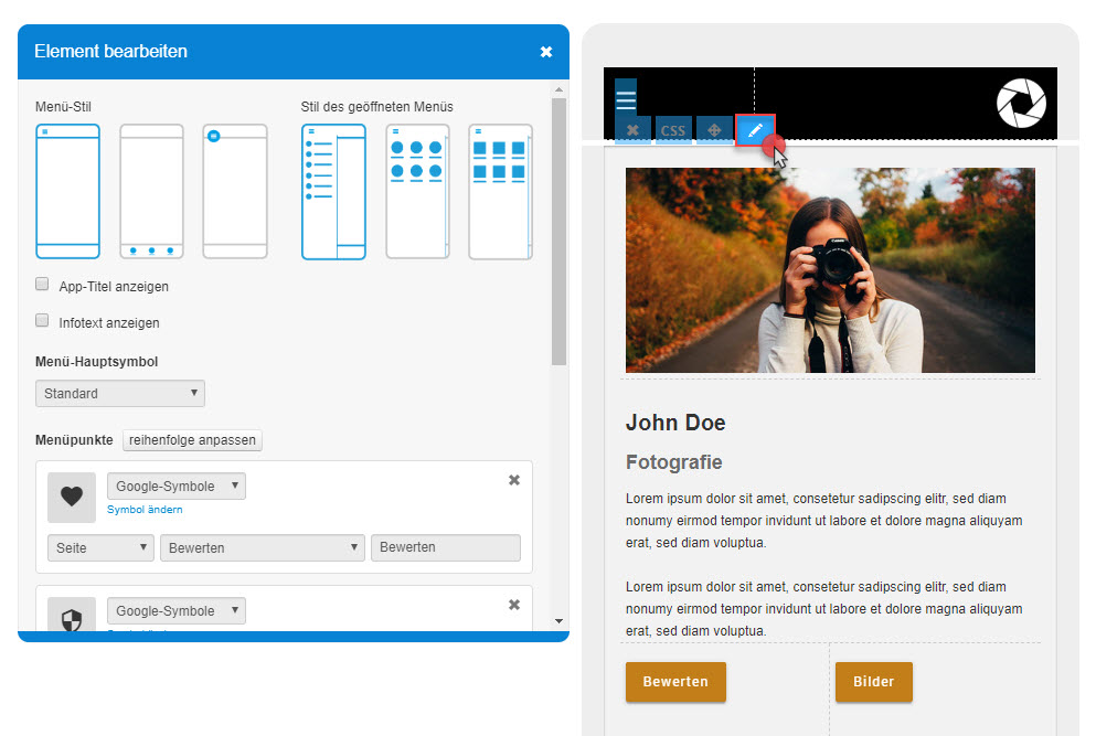 Die Benutzeroberfläche beim App Menü wurde optisch verbessert. Die verschiedenen Menüoptionen sind als Vorschaubilder direkt ersichtlich. Mit einem Klick auf das Vorschaubild wird der Menü-Stil ausgewählt. Die neue Oberfläche ist ab sofort freigeschaltet.