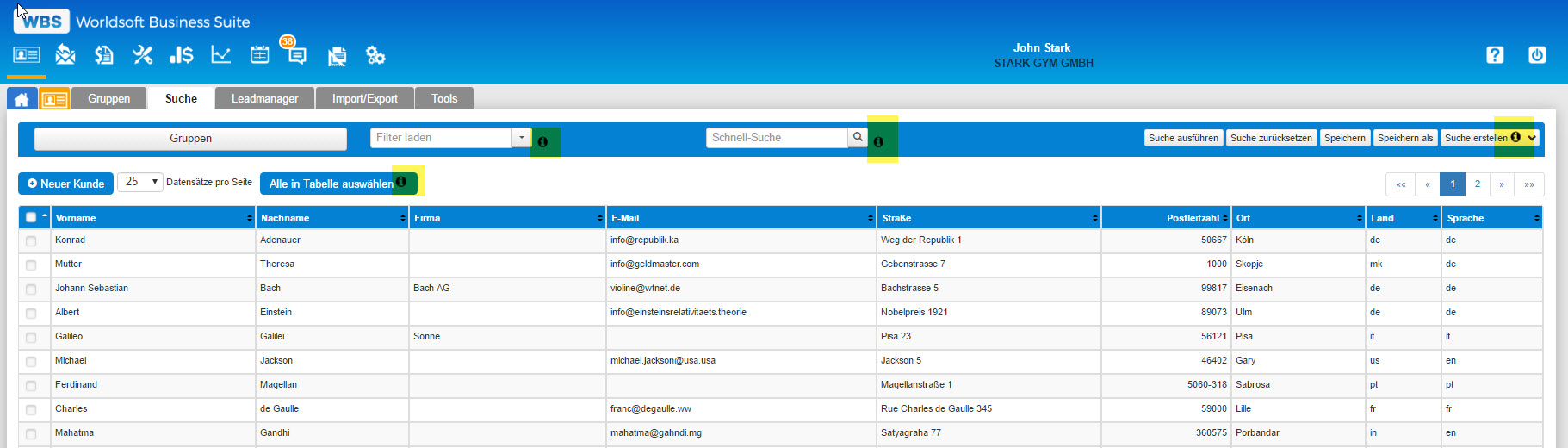 Hier ein Beispiel der Informations-Punkte bei der Adress-Suche in der CRM: