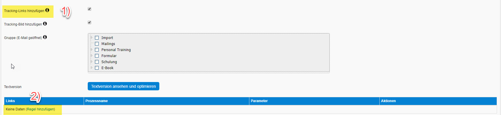 1) Unterhalb des E-Mail-Editors aktivieren Sie die Checkbox "Tracking-Links hinzufügen".