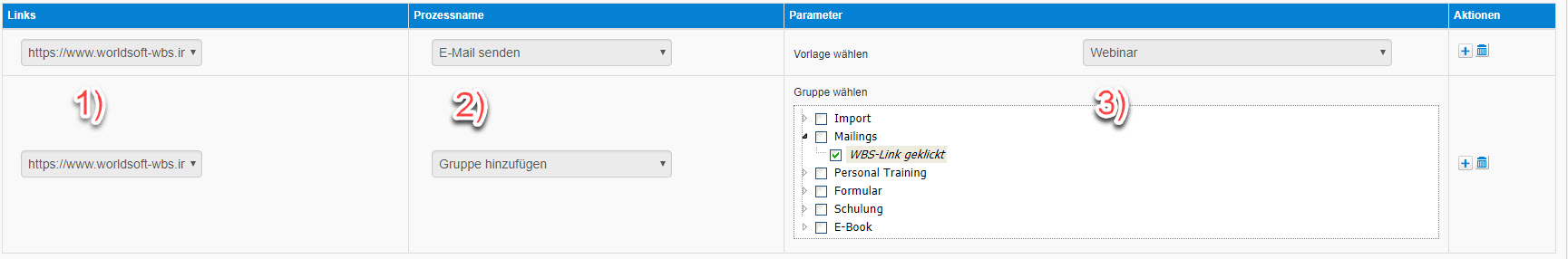 1) Wenn Sie mehrere Links eingebaut haben, können Sie jedem einzelnen Link einen Prozess zuordnen. Wählen Sie dazu einfach den gewünschten Link aus.
