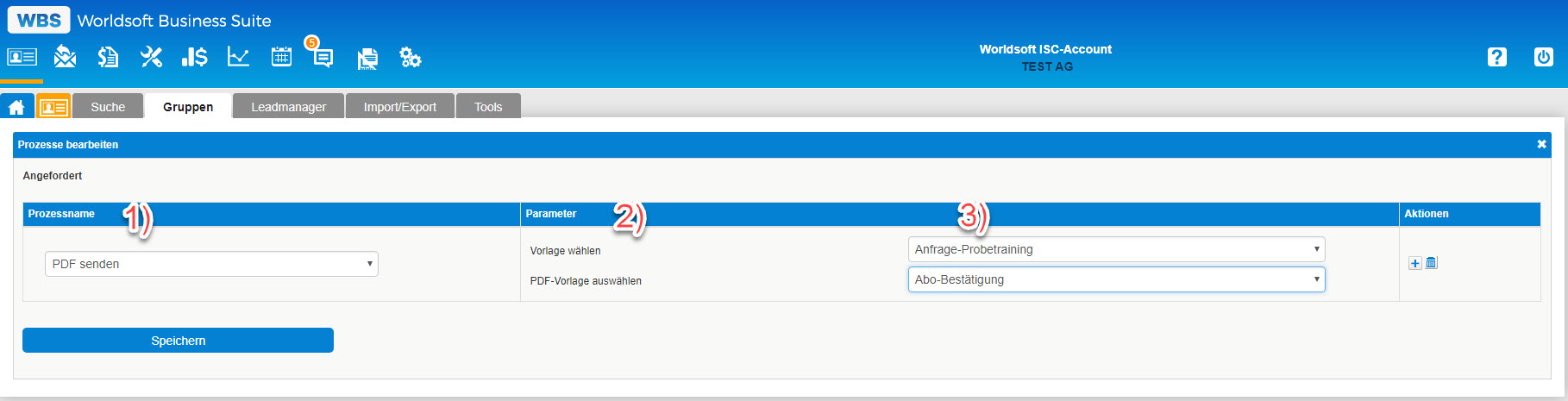 Es steht Ihnen seit heute in der Worldsoft Business Suite (WBS) ein neuer automatischer Prozess zur Verfügung. Mit diesem Auto-Prozess können Sie personaliserte Dokument wie Einladungen, Teilnehmerzertifikate, Tickets, Diplome usw automatisch persönalisiert erstellen und versenden. Das Dokument wird als Anhang mit einem automatischen E-Mail versendet. Das PDF-Dokument wird in den Vorlagen unter "Briefe" erstellt. Das Auto-E-Mail wird in den Vorlagen unter "E-Mails" erstellt. Beide Vorlagen müssen zuerst erstellt werden um den Prozess zu nutzen.