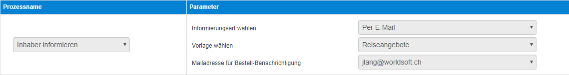 Ein Beispiel: Auf der Website ist ein Anfrage-Formular. Wenn ein Website-Besucher dieses Formular ausfüllt, möchten Sie als Website-Inhaber eine Benachrichtigung. Dafür stellen Sie in der WBS den Prozess "Inhaber informieren" ein. Sie erhalten damit eine Nachricht per E-Mail oder SMS.